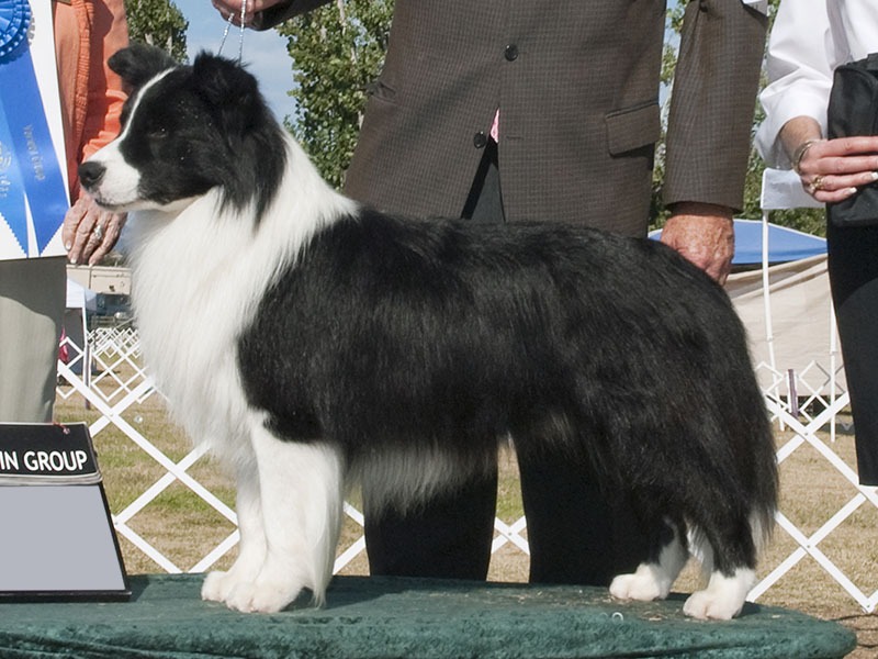 En los perros que tienen un pelaje moderadamente largo, el pelo abundante forma melenas, flecos y cola de cepillo. En la cara, orejas, miembros anteriores (excepto por los flecos) y miembros posteriores desde los corvejones hasta el suelo, el pelo debe ser corto y liso.