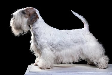 APARIENCIA GENERAL: Es un Terrier de miembros cortos, de pelo largo, bien estructurado y musculoso, de forma cuadrada, con orejas colgantes y de tamaño mediano.