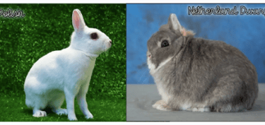 Ambos son conejos miniatura (peso adulto alrededor de 1 kg de peso), pero el Netherland Dwarf es mucho más redondo y ancho, con patas más cortas y fuertes, cabezas más voluminosas y perfil mucho más chato. La personalidad del Netherland Dwarf también es mucho más agradable, sociable y manejable.