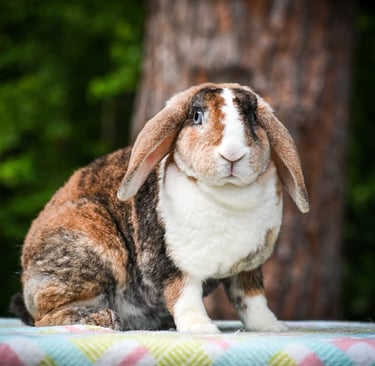 NOTA: Los Mini Plush Lops pueden posarse sentados de forma natural con las patas delanteras firmemente plantadas o con las patas delanteras presionadas hacia abajo y las patas colocadas directamente en línea con los ojos. Cuando se posan de forma ideal y se los ve de frente, las patas deben ser fuertes y rectas, sin patas cortas y rechonchas ni patas altas, delgadas y de huesos finos. El pecho debe verse orgulloso y prominente, pero no demasiado exagerado ni parecerse a una postura de bulldog. El tipo de cuerpo general de los Mini Plush Lops debe exhibir equilibrio, ser redondo, corto, fuerte y compacto. Una sección media más larga no es deseable. El pelaje es corto, denso, sedoso y el tallo es un poco más largo que el del Mini Rex, pero no le falta lustre, suavidad y brillo.