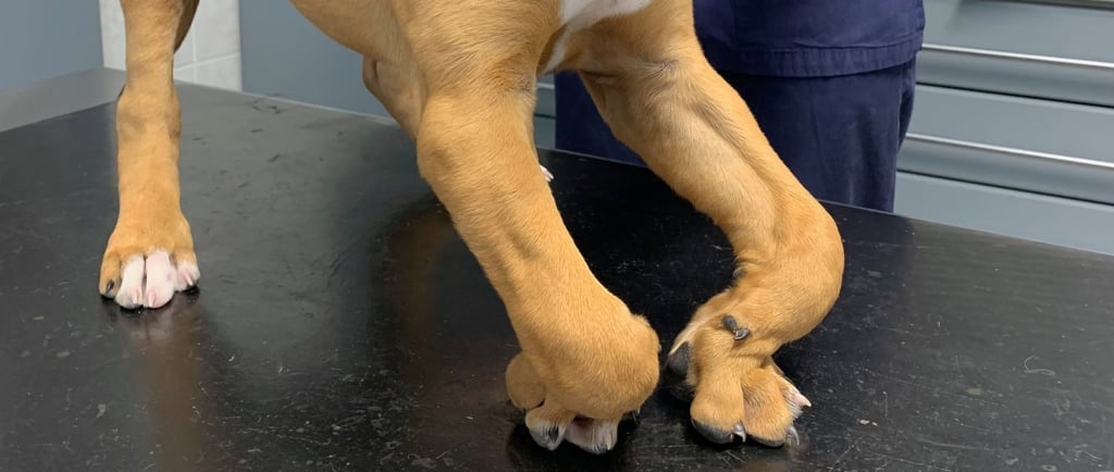 Entre las semanas 5 y 10 de vida, algunos cachorros experimentan un crecimiento especialmente rápido del radio y el cúbito, los principales huesos que conforman el antebrazo. Este ritmo acelerado no siempre va acompañado de un desarrollo proporcional de las estructuras blandas, especialmente los tendones flexores. La consecuencia es una tensión anómala que tira de la extremidad hacia posiciones antinaturales.