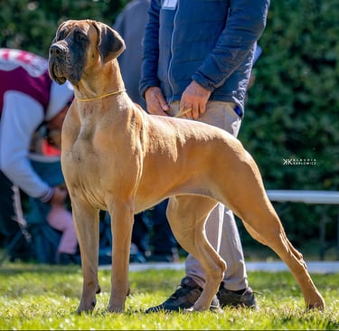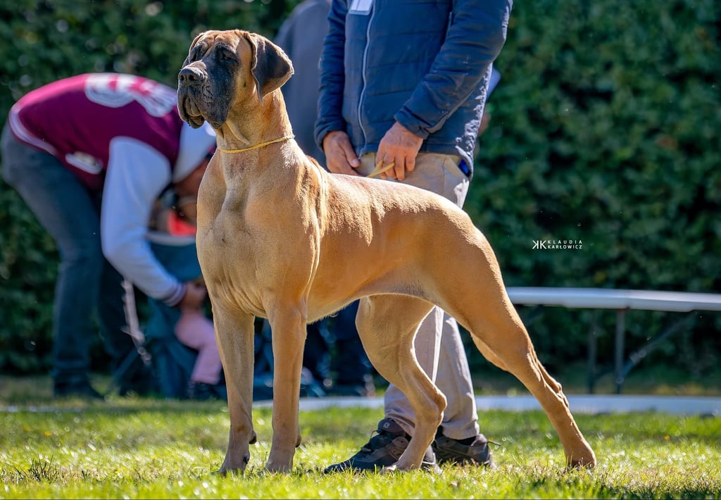 APARIENCIA GENERAL: El Gran Danés reúne en su apariencia general aristocrática una estructura corporal fuerte en conjunto con orgullo, fuerza y elegancia. La sustancia junto a su nobleza y armonía en su apariencia con el trazado de sus líneas bien proporcionado, una cabeza especialmente expresiva, dan al observador la imagen de una noble estatua. No es ni demasiado elegante ni burda. La diferencia entre los sexos está claramente definida. Es el Apolo ente las razas caninas.