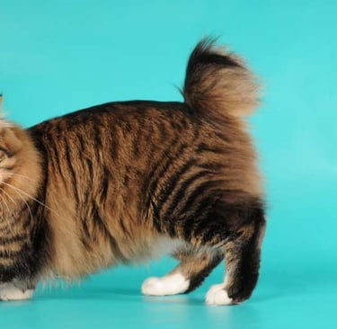 La característica principal de este gato es la cola corta natural. Su cola es muy flexible puede ser recta pero también curvada o retorcida. Debe ser lo suficientemente larga para que se encuentre visible cuando el gato esté alerta.