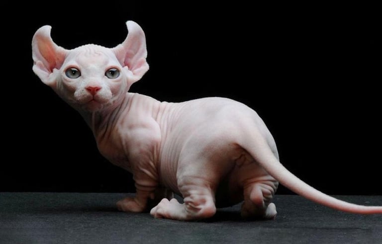 El gato Elf o Elfo es una fascinante y poco común variante del gato Sphynx, considerada una de las razas felinas más singulares del mundo. Su origen es relativamente reciente: fue desarrollada en el año 2007 en Estados Unidos, como resultado del cruce entre el Sphynx, conocido por su característica ausencia de pelaje, y el American Curl, famoso por sus orejas curvadas hacia atrás. Gracias a esta combinación, el gato Elf heredó lo mejor de ambas razas: la piel desnuda, suave y tibia del Sphynx y las orejas arqueadas y elegantes del American Curl, que le dan una apariencia única y casi mágica.