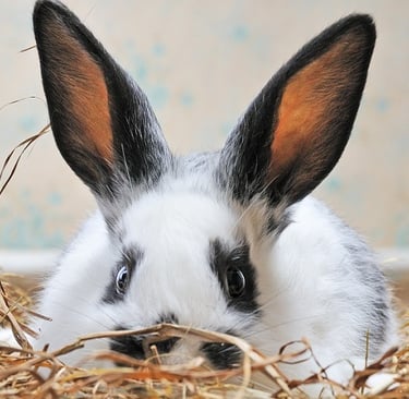 En raras ocasiones, un conejito blanco con ojos rosados (REW) puede verse afectado. Si un conejo tiene este patrón de pelaje y caca de tamaño/forma irregular, recomendamos visitar a un veterinario experto en conejos para hacerse una prueba fecal para descartar coccidios y preguntar sobre la posibilidad de megacolon y si recomendarían comenzar con medicamentos regulares para la motilidad antes de que haya al problema serio.