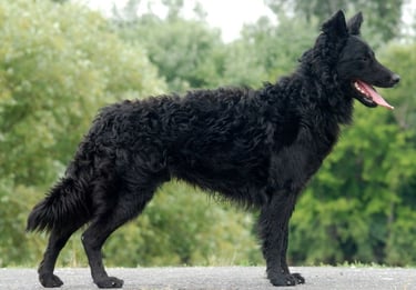 ASPECTO GENERAL : Perro pastor de tamaño medio con cabeza en forma de cuña. Orejas erectas. La línea superior del cuerpo se inclina sensiblemente hacia atras. La cabeza y las extremidades están recubiertas de pelo corto y liso. El resto del cuerpo tiene un pelaje un poco más largo, fuertemente ondulado hacia levemente rizado. Existe en diferentes variedades de color.