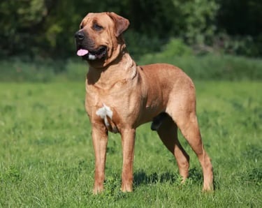 APARIENCIA GENERAL: Es un perro de gran tamaño, que posee un aire majestuoso y una constitución robusta. Tiene orejas colgantes, pelo corto, hocico cuadrado y rabo colgante y grueso en la base.