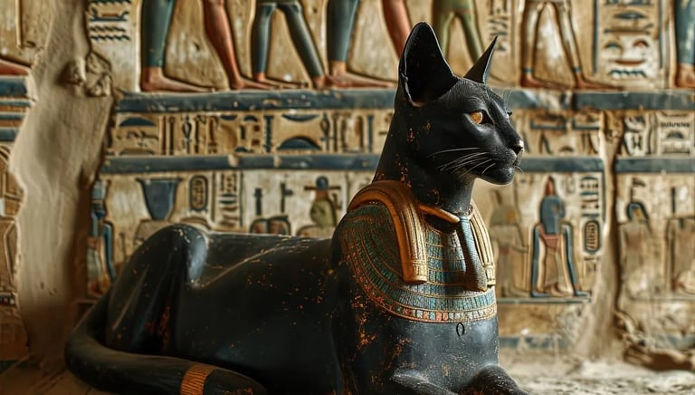Los gatos ocupan un lugar destacado en el imaginario del Antiguo Egipto. Su elegancia, su habilidad como cazadores y su comportamiento enigmático hicieron que esta civilización los considerara criaturas especiales, asociadas tanto a la protección del hogar como a las divinidades.