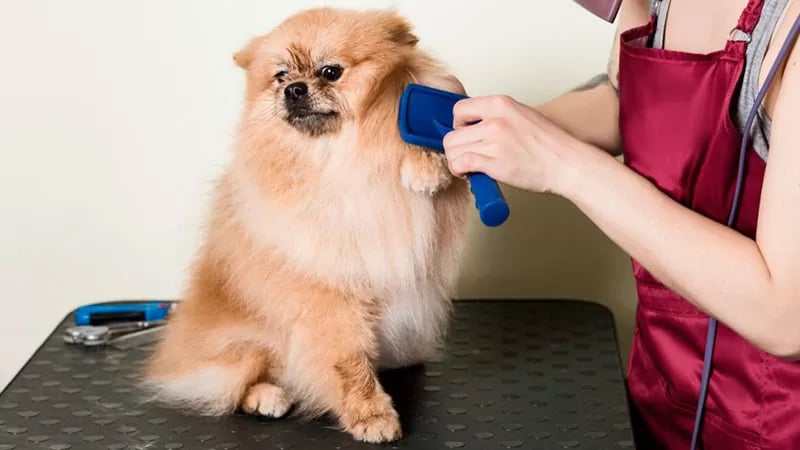 visita a la peluquería aproximadamente una vez al mes para mantenimiento profesional, revisión de la piel y retirada del subpelo compactado