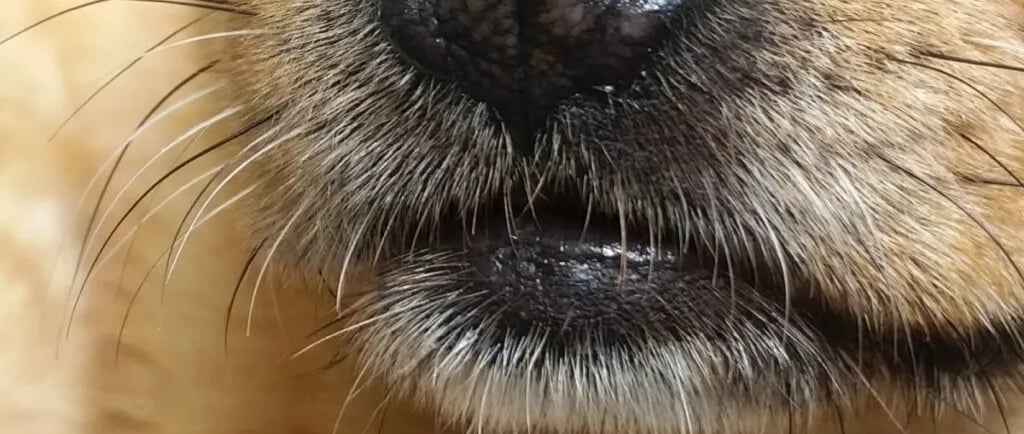 Los bigotes no son pelos faciales extra largos, si no que tienen un propósito totalmente diferente. Los bigotes, también conocidos como “vibrissae“, son los pelos gruesos que rodean la nariz y la mandíbula de los perros, y que también se encuentran sobre los ojos.