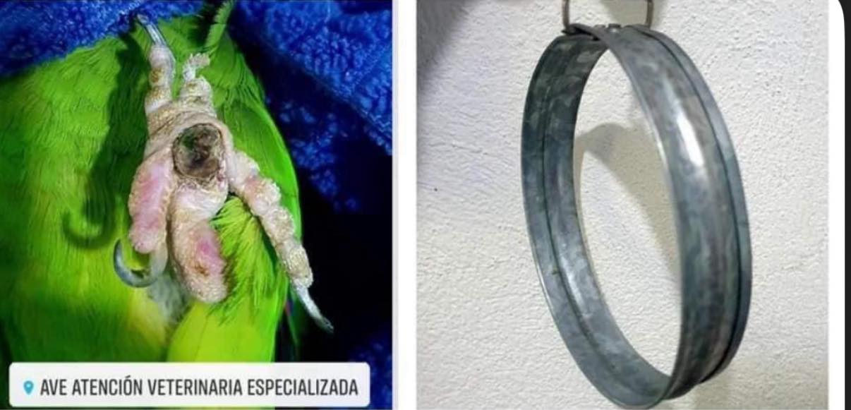 LOS LOROS NO DEBEN APOYARSE EN AROS DE METAL