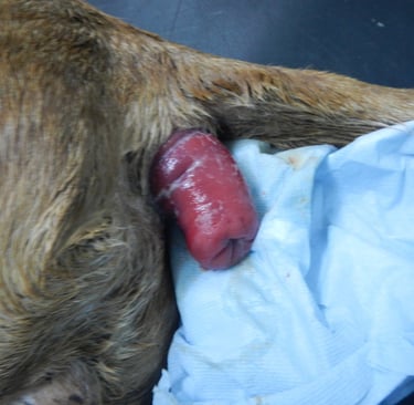Los prolapsos son muy dolorosos y peligrosos, si sospechas que tu mascota tiene uno o puedes verlo con claridad acude de inmediato al veterinario, mientras tanto limpia el órgano muy bien con suero fisiológico para evitar su contaminación.