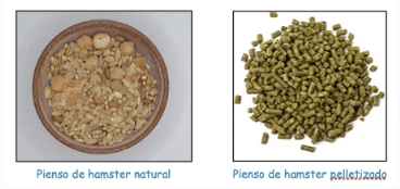 Estos piensos baratos llenos de cosas que no sabemos que son —las cositas de colores—, productos altos en grasas —frutos secos y pipas— y golosinas son totalmente desaconsejables. En España, el bienestar de los hámster está muy poco extendido y la legislación para su alimentación es muy laxa, por lo que se permite vender cualquier cosa para alimentarlos. Un buen pienso para hámster se presentará dedos maneras: